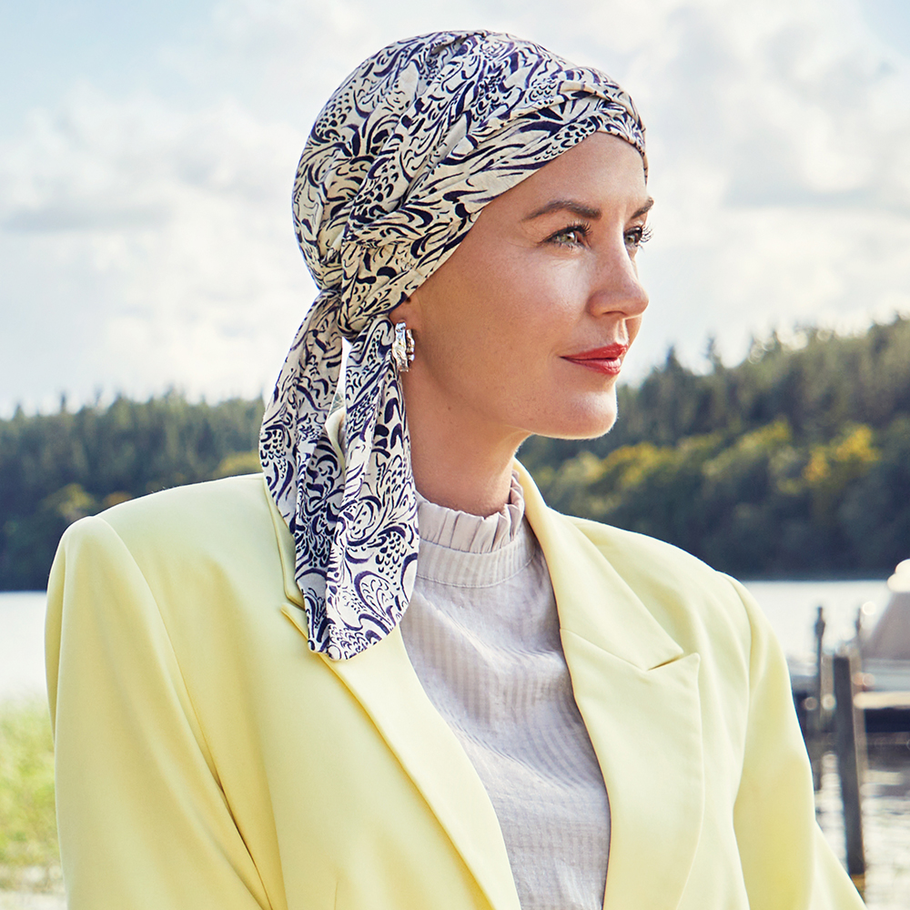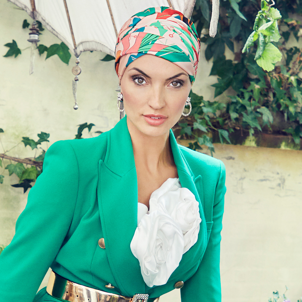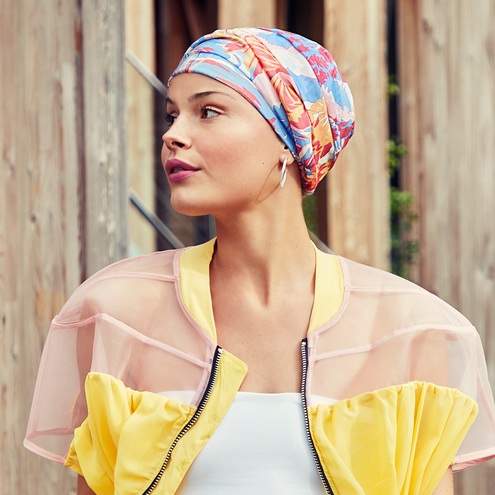 La collezione Bandane/Foulards Christine nasce dall’esigenza di garantire alla pelle la giusta respirazione e il contatto con materiali naturali soprattutto in casi di alopecia areata, per chemioterapia, da lupus.